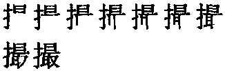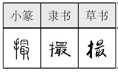 【提示】最,下面是取,上边一横写得长些,包住下边的又; 上面的曰中间一横、下左耳的中间两横,宋体均与两边相接,楷体均与左边相接,与右边相离。 *撮cuō15画 手部 (1) 用手指捏起(细碎的东西): ~点儿盐|~了点儿消炎粉敷在伤口上。 (2) 摘要: ~要|~录。 (3) 量词。 1. 用于手指捏取东西的量;又指极少的: 一~茶叶|一~芝麻|一小~坏人。 2. 市制容量单位。1撮合1毫升。 (4) 使聚在一起: ~合。 (5) 用簸箕等把东西聚拢并铲起: 把垃圾~走。 (6) 〈口〉 吃: ~一顿。 另见zuǒ(540页)。