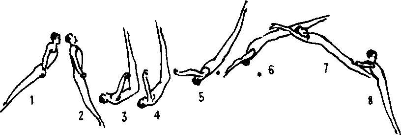 释义 | 支撑后倒弧形下 支撑后倒弧形下单杠简单跳下动作之一。也是体育院 系体操普修教学大纲内容。技术要点:由支撑姿势开始举腿屈髋,快速倒肩时,两臂必须压紧杠子。当肩轴超过杠下垂面后,要用力向前上方伸直髋关节,同时直臂向头后领杠松手。进入腾空阶段后,两腿下压抬头挺胸并呈反弓形直至落地前刹那。初学者可由低杠站立悬垂来做跳起弧形下的动作。开始可通过助力,基本掌握后可在中杠上由支撑后倒来做。保护者位于杠前侧方,一手托臀,一手托背,助其向前上抛出。接着两手前后扶托其腹背,助其安全落地。 ☚ 支撑后摆跳下 支撑后摆向前屈腿跳下 ☛ 支撑后倒弧形下 支撑后倒弧形下是从低单杠移植过来的下法之一,也是基础下法之一。可在低杠上做,也可在高杠上做。可由支撑后倒连接该下法,也可由(分腿和并腿)立撑连接,并由此发展成高难度下法。如弧形团身前空翻下及前空翻转体180°等下法。此动作是个有价值的下法。动作要领:支撑含胸,梗头,向后倒肩,接着微收腿屈髋(腹部靠近杠面),两腿迅速沿杠向前上方射出同时伸髋,两臂伸直向后方猛提杠后放手,使身体向前上方呈抛物线状抛出,身体在空中挺直后落地。保护者站在杠前侧方,当练习者倒肩向前上方射出后,一手推肩一手托腰帮助向前上方射出,落地时两手扶腰防止受伤。为了正确掌握此动作可采用一些辅助练习。1.低杠后站立一腿蹬地另一腿摆动弧形下;2.两腿蹬地跳起弧形下。为了保证有良好的射出方向,可在杠前方放置一皮条,要求练习者身体越过此皮条。 ☚ 后撑前摆跳下 单脚站立低杠,一手握高杠,另一手撑低杠,单腿后摆挺身下 ☛ 支撑后倒弧形下 支撑后倒弧形下低杠支撑,借助向前摆腿和后倒上体,使身体向前上沿弧线挺身跳下的动作。动作要领:支撑,直臂撑杠,梗颈,上体后倒,同时两腿前摆(稍屈髋)向前上方举起。当肩部倒至杠下垂直部位时,两腿向前上方沿弧线迅速地伸出,送髋,两臂同时伸直用力向后引杠,拉开肩角后放手,接着两腿下压制动,身体挺直沿弧线落下。保护与帮助:保护者站在杠前侧方,一手从杠下翻握他的手腕,另一手托他的腰背。教学重点:低杠站立悬垂开始,做两脚跳起弧形下动作,体会摆腿、倒体、沿弧形线挺身落下的配合技术,然后,在助力下做完整动作。 支撑后倒弧形下 ☚ 悬垂摆动后摆下 跑动外挂膝上 ☛ |