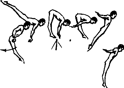 释义 | 支撑后摆向前屈体跳下 支撑后摆向前屈体跳下单杠低难度动作之一。技术要点:由支撑姿势开始。两腿落下立即用力向后上方摆起,配合两臂推杠拉开肩角。接着固定臀部,脚面发力直腿向下猛折,同时两手用力推离,上体抬起呈屈体姿势越杠,紧接两臂上举,梗头上顶,紧腰伸髋准备进入落地。可先在助力下练习支撑后摆经屈体立撑跳下。保护者位于杠前,练习时手扶顶肩部,或位于杠侧,一手握臂,一手托腿。熟练后可在保护下直接练习。保护者位置和助力方法同前。 ☚ 支撑后摆向前屈腿跳下 屈体立撑后倒弧形屈体下 ☛ |