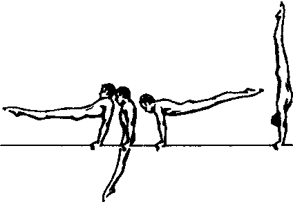 释义 | 支撑后摆成手倒立 支撑后摆成手倒立双杠项目低难度动作之一。该动作是双杠中最基本也是最重要的基本动作,它是发展许多高难度动作的技术基础。支撑后摆时,必须含胸顶肩,两臂充分伸直,使身体尽量向后上方自然摆起并保持身体伸直姿势上至手倒立。帮助者站在练习者的侧面,一手扶肩,另一手托腹部帮助练习者后摆至手倒立。还要教会练习者自我保护方法,当倒立前翻时,练习者顺势屈臂、收腹、开肘做杠上前滚翻动作,或撒一只手,倒立转体跳下杠外。练习方法可反复在双杠上做由小到大的支撑摆动练习;在倒立架上做靠倒立和控倒立的练习,提高倒立平衡能力。 ☚ 后摆屈体摆越同时转体180°成支撑 支撑前回环成支撑 ☛ 支撑后摆成手倒立 支撑后摆成手倒立高低杠中难度动作之一。也是高低杠上的重要基本动作。随着体操技术的发展,成套动作水平的提高,后摆成手倒立的质量越发显得重要,特别是规定动作比赛,高标准的摆成倒立往往成为获得高分的追逐目标。因此,在打基础阶段,尤其要注意其正确要领。动作要领:它由支撑预摆开始,顶肩,梗头,含胸,两腿后摆成倒立。后摆时身体和两臂要求伸直,两腿并拢,切忌挺胸、塌腰和分腿,成倒立时脚尖向上顶,身体成一直线。初学时教练员给以正确的助力是运动员掌握正确技术要领和形成正确动力定型的关键。 ☚ 高杠支撑后摆成悬垂 正握高杠站立低杠,跳起成高杠手倒立 ☛ |