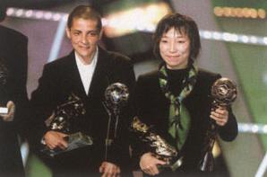 释义 | 中国的“金球奖”和“金鞋奖” “金球奖”和“金鞋奖”是为促进中国足球运动水平的提高,而由《体育报》设立的两项奖。 首届“金球奖”即全国最佳足球运动员奖,贾秀全获得;“金鞋奖”即全国优秀射手奖,由南京部队足球队中锋黄德兴捧走,他在1984年的正式比赛中踢进27个球。 “金球奖”和“金鞋奖”奖杯是由著名的大连玻璃制品厂制作赠送的。这两个奖杯,采用高铅晶质玻璃、稀土著色(铈钛黄,呈金色)制作而成,属世界上最名贵的玻璃制品。每个奖杯高40厘米、重4公斤,一个为球形,一个为靴形。 由于在1999年女足世界杯上的出色表现,孙雯获当年世界杯赛的金鞋奖与金球奖。图为孙雯出席国际足联最佳运动员的颁奖典礼。 |