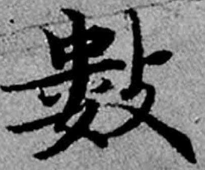 释义 | 數數(数)Shù现行罕见姓氏。今山西之忻州、阳泉等地有分布。《山西人口姓氏大全》收载,未详其源。 數1.shù ❶數目,數量。馬融《長笛賦》:“故聊復備數,作《長笛賦》。”丁廙《彈棋賦》:“列數二六,取象官軍。” 數“数”的繁体字。 上一条: 数 下一条: 黍 數“数”的繁体字。 上一条: 数 下一条: "> 數“数”的繁体字。 上一条: 数 下一条: 䉤 數“数”的繁体字。 上一条: 数 下一条: 帅 數“数”的繁体字。 上一条: 数 下一条: 酢 ![]() ![]() ![]() ![]() ![]() ![]() ![]() 數数(1次) 数目。谁知其~《天》 數数(3次) 屡次。伤灵修之~化《离》 ~惟荪之多怒兮《章·抽》 梅伯~谏而至醢兮《惜》 數❶九數之計。《周禮·地官·大司徒》: “以鄉三物教萬民而賓興之,……三曰六藝:禮、樂、射、御、書、數。”鄭玄注: “數,九數之計。” 古代名物 > 人體類 > 其他部 > 脈象 > 數 數 shuò 脈象名。其脈急速,一息五至以上,故稱。主熱症。數而有力爲實熱,數而無力爲虚熱。其稱始見於先秦典籍,今稱數脈。《素問·陰陽别論》:“數者爲陽。”明·李時珍《本草綱目·附瀕湖脈學》:“數脈一息六至,脈流薄疾。” 數94B5 數shǔ,shùS160 〖數〗 (一)粵 sou2〔〕普 shǔ ❶ 計算,計數。許慎《說文解字》:「 〜 ,計也。」司馬光《訓儉示康》:「以侈自敗者多矣,不可遍〜。」❷ 列舉。賈誼《治安策》:「陛下何不壹令臣得孰〜之於前?」 ❸數落,譴責,責怪。文天祥《指南錄.後序》:「〜呂師孟叔姪為逆。」俞長城《全鏡文》:「~之曰。」(之:指鏡神。) (二)粵 sou3〔素〕普 shù ❶ 數目,數量。司馬光《資治通鑑.漢紀.孝獻皇帝庚》:「眾〜雖多,甚未足畏。」❷ 儒家六藝之一。《周禮.地官司徒》:「三曰六藝:禮、樂、射、御、書、〜。」 ❸ 幾。柳宗元《永州八記.始得西山宴遊記》:「則凡〜州之土壤,皆在衽席之下。」 ❹ 命數,天命。蘇洵《六國論》:「勝負之〜,存亡之理。」 ❺ 規律。范曄《後漢書.李杜列傳》:「夫窮高則危,大滿則溢,月盈則缺,日中則移。凡此四者,自然之〜也。」 ❻ 技藝。孟軻《孟子.告子上》:「今夫弈之為〜,小〜也。」(弈【粵 jik6〔亦〕普 yì】:下棋。) (三)粵 sok3〔四各切〕普 shuò 副詞,屢次。歸有光《歸氏二孝子傳》:「孝子〜困。」(四)粵 cuk1〔促〕普 cù 密,與「疏」相對。《孟子.梁惠王上》:「〜罟不入洿池,魚鱉不可勝食也。」(洿【粵 wu1〔烏〕普wū】:池塘。鱉【粵 bit3〔臂結切〕普biē】:甲魚,水魚。)數数, |
