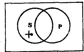 指用交叉圆圈来表示词项间外延关系的一种图解。英国数学家和逻辑学家文恩(John Venn)1834—1923所发明。文恩对欧拉图作了改进,用一个矩形来表示论域,用“+”号标志有分子存在,用“-”号标志没有分子存在。使用文恩图可以表示传统逻辑中的四种直言命题。对于全称肯定命题“所有S是P”,文恩图表示如下:对于全称否定命题“所有S不是P”,文恩图表示如下:对于特称肯定命题“有的S是P”,文恩图表示如下:对于特称否定命题“有的S不是P”,文恩图表示如下:使用文恩图还可以表示三段论的推理,并且比较容易地判明一个三段论式是否有效。例如对于第一格的AAA式即“所有M是P并且所有S是M,所以,所有S是P”,文恩图表示如下:从图中很容易看出这是一个有效式,因为根据两个前提所画出的图形正是表示了“所有S是P”。
