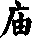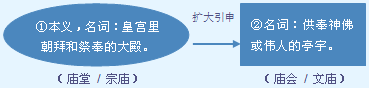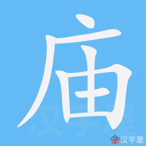 字源解说 朝,既是声旁也是形旁,表示皇宫在日出时祭拜天地的仪式。庙,金文 = (广,开放性空间)+ (朝,祭拜),表示臣子朝拜帝王的地方。造字本义:皇宫里朝拜和祭奉的大殿。篆文 将金文的的“早” 写成 ;将金文的“川” 写成“舟” 。隶书 误将篆文的“舟” 写成“月” 。俗体楷书 另造会义字,“由”是“宙”的省略,“广宙”即大殿。 附 文言版《説文解字》:廟,尊先祖皃也。从广,朝聲。 ,古文。 附 白话版《说文解字》:庙,尊敬祖先的样子。字形采用“广”作边旁,采用“朝”作声旁。 ,这是古文写法的“庙”字。 引申线索