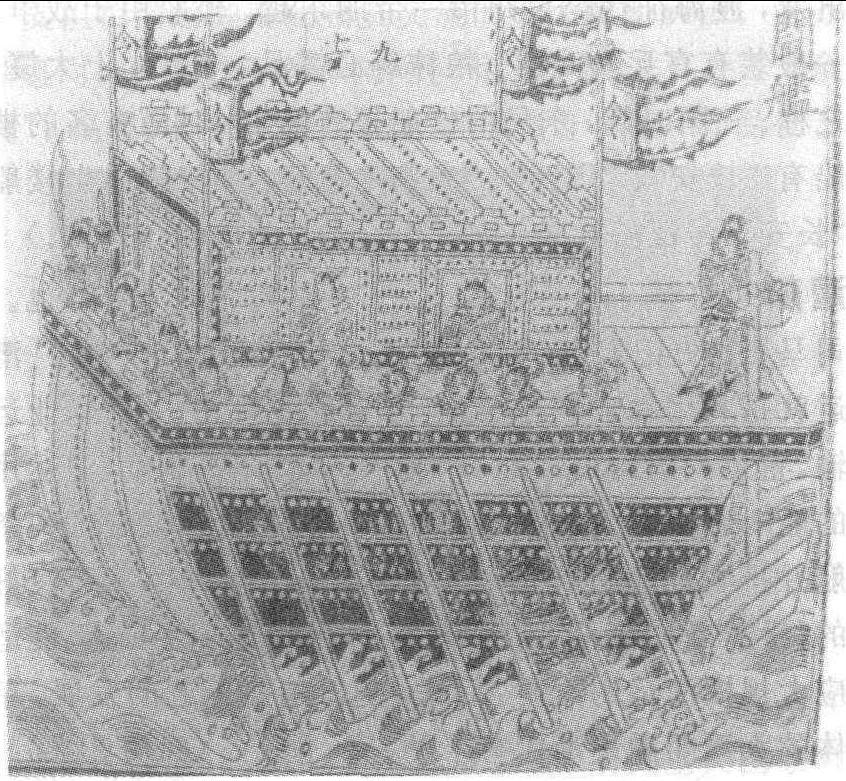 斗舰 ☚ 舫 艨艟 ☛ 斗舰古代战船。沿船舷设女墙,约高3尺,墙下开有棹孔,船内5尺又建棚,高与女墙等,棚上又建女墙,于其中置金鼓,前后左右树旗帜。三国时期吴军就建有此类大型战船。 斗舰汉代一种主力战船。船舷上设置女墙,可以掩蔽士兵的下半身;墙的下面船舷上开有棹孔,跟蒙冲一样;甲板上建有棚,棚上又建有女墙;棚上无覆背,前后左右竖旗帜金鼓,用来指挥作战。斗舰的战斗力强,又可以壮大舰队声势,是水军的重要舰只。汉后在海战中亦常使用斗舰。 |