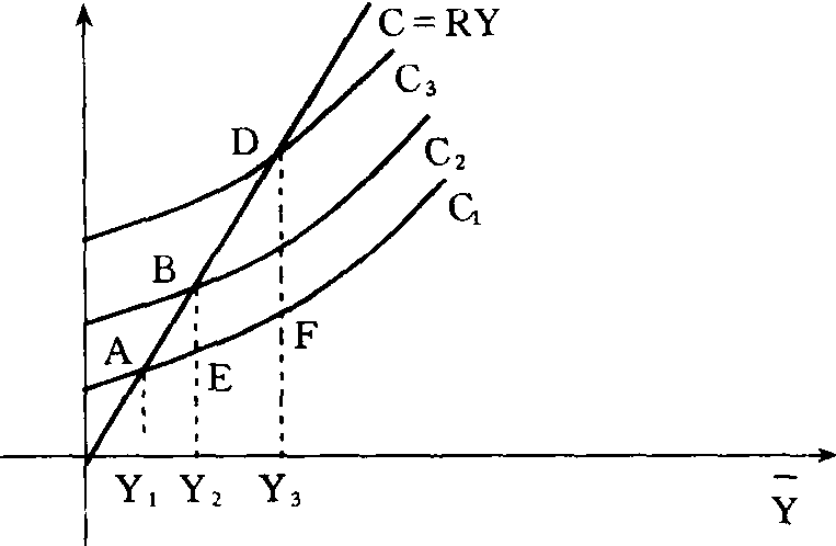 释义 | 斯密西斯个人消费储蓄理论A·斯密西斯关于调和长期消费函数与短期消费函数之间矛盾的理论。 斯密西斯个人消费储蓄理论 斯密西斯个人消费储蓄理论Smithies′individual savingand consumption theory A·斯密西斯关于调和长期消费函数与短期消费函数之间矛盾的理论。 图16-14 另一方面,长期消费函数是实际上发生的消费与所得的观察值。当所得水准为Y1时,所观察的消费发生在A点。当所得水准提高到Y2时,假如依原来的短期消费函数,消费量应该发生在E点。然而,这时原来的短期消费函数C1可能已不复存在,而有另一条位置更高的短期消费函数C2出现。因此,当所得为Y2时,消费量不会发生在E点,而会发生在C2上面的B点。就所得水准为Y3而言,情况相同,消费量不会发生在F点,而会发生在C3上面的D点。如此,若就时间的经过,把这些实现的观察值A、B、D连接起来,则可看出长期消费函数为C=RY,如此,A、B、D固然也是短期消费函数上面之点,但因短期消费函数随时间移动的关系,使这些点并不由同一条短期消费函数产生。 ☚ 边际消费倾向递减规律 杜森贝个人消费储蓄理论 ☛ |