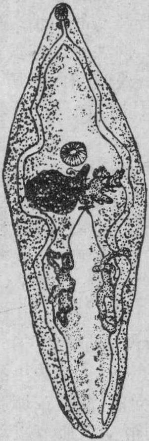 释义 | 斯氏狸殖吸虫pagumogonimus Skrjabini寄生于狸、狗、猫、鼠等动物体内。其生活史与卫氏并殖吸虫相似。成虫主要寄生在肺部,虫体狭长,大小为12~15.5×3.1~5mm,虫卵随粪便或痰液排出体外,以某些淡水螺为第一中间宿主,蟹为第二中间宿主。本虫在国内分布较广,人体感染均由于生食或半生食感染本虫囊蚴的溪蟹所致。本虫在人体内一般不能发育到成熟产卵,但其童虫可在各器官或组织之间游窜。常见症状为移动性皮下结节或包块。确诊有赖于皮下结节活检查获童虫,免疫诊断试验也有一定价值。可用吡喹酮治疗(图)。 斯氏狸殖吸虫 |