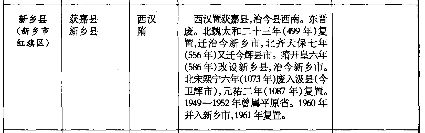 新乡县(新乡市红旗区)获嘉县新乡县西汉隋西汉置获嘉县,治今县西南。东晋废。北魏太和二十三年(499年)复置,迁治今新乡市,北齐天保七年(556年)又迁今辉县市。隋开皇六年(586年)改设新乡县,治今新乡市。北宋熙宁六年(1073年)废入汲县(今卫辉市),元祐二年(1087年)复置。1949—1952年曾属平原省。1960年并入新乡市,1961年复置。