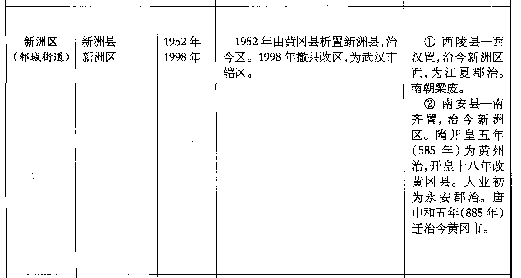 新洲区(邾城街道)新洲县新洲区1952年1998年1952年由黄冈县析置新洲县,治今区。1998年撤县改区,为武汉市辖区。❶ 西陵县—西汉置,治今新洲区西,为江夏郡治。南朝梁废。❷ 南安县—南齐置,治今新洲区。隋开皇五年(585年)为黄州治,开皇十八年改黄冈县。大业初为永安郡治。唐中和五年(885年)迁治今黄冈市。