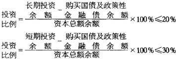 监管当局考核金融信托投资公司资产负债比例管理的十个指标之一。包括两方面:长期投资扣除购买国债和政策性金融债后的余额不得超过资本总额的20%;短期投资扣除购买国债和政策性金融债后的余额不得超过资本总额的30%。公式为: