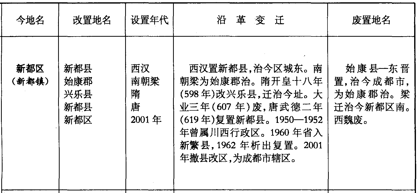 新都区(新都镇)新都县始康郡兴乐县新都县新都区西汉南朝梁隋唐2001年西汉置新都县,治今区城东。南朝梁为始康郡治。隋开皇十八年(598年)改兴乐县,迁治今址。大业三年(607年)废,唐武德二年(619年)复置新都县。1950—1952年曾属川西行政区。1960年省入新繁县,1962年析出复置。2001年撤县改区,为成都市辖区。始康县—东晋置,治今成都市,为始康郡治。梁迁治今新都区南。西魏废。