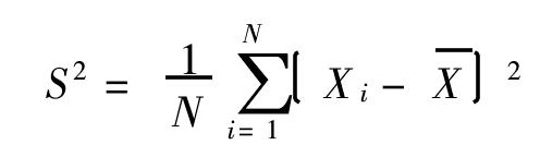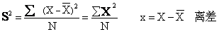 从公式可以看出,方差(变异数)是对一组数据中各种变异性的总和的测量,主要具有可加性特点。人们利用其可加性分解并确定出属于各种不同来源的变异性,如组间和组内,从而说明每一种变异性对总结果的相对影响,从而成为统计推论中常用的重要统计数。 ☚ 负偏态分布 标准差 ☛ 方差表示随机变量ζ与其数学期望Eζ之间离散程度的一个量。即(ζ-Eζ)2的数学期望。通常记为Dζ或S2,Dζ=Eζ(ζ-Eζ)2。仿此可定义样本的方差S2=1/n (xi-)2,其中为样本x1,x2,…,xn的平均数。这个量也反映了样本的离散程度。 方差variance亦称变异数,是指总体中各变量值与其均数之差平方后的均数。用来表示变量值与其均数之间的离散程度。公式为:  实际应用中常以样本方差作为总体方差的估计值。样本方差的公式为: 式中σ2为总体方差,S2表示样本方差,X为变量值,μ为总体均数,X为样本均数,n为变量值的个数,∑表示总和。方差愈小,说明事物的离散程度愈小;方差愈大,说明离散程度愈大。方差variance指随机变量的所有可能值与其期望值之差的平方的期望值。通常用δ2表示。对于随机变量x,其方差为: δ2=E (x-Ex)2=E (x-μ)2 式中,Ex=μ为X的期望值。对于变量的随机样本,其方差则等于样本观测值与样本均值之差的平方的均值, 通常用S2表示, s2=1/N (xi-x)2 其中,x1为样本观测值,x为样本均值, x=1/N xi, N为样本容量。方差开算术平方根后所得之值δ,S分别为总体和样本的标准差。方差是衡量一个随机变量分布的离散程度的最重要的指标之一,一个随机变量的方差愈小,说明其分布愈集中,密集于它的数学期望值近。反之,方差越大,说明其分布愈分散。标准差也是衡量随机变量分布之离散程度的重要参数。 方差Variance随机变量及其数学期望之间的偏离程度。计算公式为:V(x)= (x-μ)2f(x)。其中,μ为随机变量的均值,f(x)为随机变量的概率密度函数。方差的性质: ❶变量的方差等于变量平方的平均数减变量平均数的平方; ❷变量对算术平均数的方差,小于对任何常数的方差; ❸n个同性质独立变量的方差等于各个变量方差之和; ❹n个同性质独立变量平均数的方差等于各变量方差平均数的1/n。 方差衡量一个变量的样本观测值对其平均值的离散程度的指标。如一个变量X,其样本观测值为Xi,i=1,2,3,…,N。首先求得这些样本观测值的平均值,记为 ;然后求出每个观测值与平均值的差,记为 。这些差有的可能为正数,有的可能为负数。再对这些差进行平方,使其全部为正数,记为 。最后求出其平均值,就是方差。以S2代表方差,其计算公式为:  对于一个随机变量来说,方差为其所有可能值与其期望值之差的平方的期望值。方差越小,表明其分布越集中于其期望值附近。方差的平方根,称为“标准差”。方差又称均方离差。是指总体中各标志值与其平均数的离差平方和平均数。其计算公式为:(1)对于未分组资料,