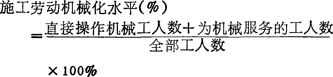释义 | 施工劳动机械化水平(%)施工机械化就是建筑企业在施工生产中使用机器操作来代替手工操作,是对建筑上进行技术改造的内容之一。 直接操作机械工人:如挖土机司机、推土机司机、起重机司机等。为机械服务的工人: 是指跟随机械施工,但以人力完成有关工序的工人,如司机助手、配合机械吊装作业的起重工等。 由于各种工人的人数能直接相加,所以这个指标能综合反映劳动机械化水平。这个指标既可反映每项工作的机械化程度,又可综合反映企业整个施工过程的机械化程度。 |