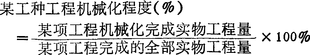 释义 | 施工工种机械化程度(%)是从生产成果角度来反映施工机械化程度的相对指标。指各项工程机械化完成实物工程量在各项工程完成的实物工程总量中所占的比重。计算公式为: 这个指标能够反映出各主要实物工程的机械化程度,以工种工程为考察对象,主要考核土石方工程、桩基、起重吊装垂直运输、预制和现浇混凝土工程等主要实物工程的机械化水平,指标数值愈大,说明工种工程的机械化水平愈高。这个指标分子;机械化完成实物工程量,系根据各个施工过程中主要环节的机械化来确定的。 |