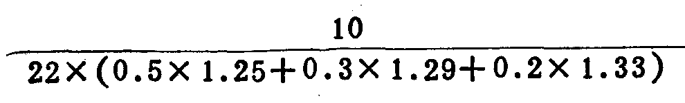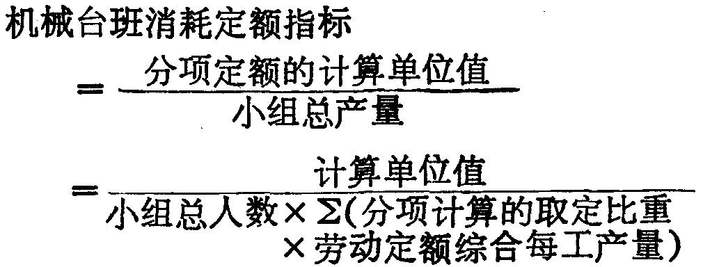 例如砖墙基,分项计算的取定比重若为一砖厚50%,一砖半厚30%,二砖厚20%,其劳动定额综合每工产量若分别为1.25m3,1.29m3,1.33m3,劳动定额规定小组总人数若为22人,则机械台班消耗定额指标为: