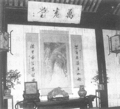 墙上可悬立轴或牌位,或供神佛,前置几案座椅。中堂为举行礼仪或接待宾客之处。