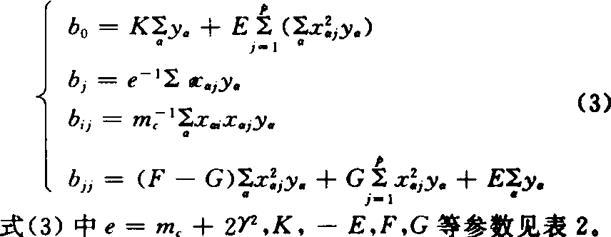 表2 二次通用旋转设计计算回归系数的参数