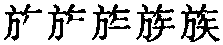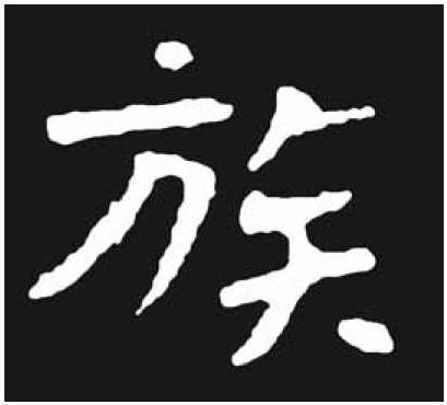 zú表意,甲骨文、金文、小篆从 (yǎn)从矢, 为旗,是氏族的标志,矢为箭,指武器,隶定为“族”。本义表示同姓氏的人手持武器聚集在一起,共同御敌。(一说表示箭在旗下聚凑,本义为聚集。)引申为宗族、家族、灭族(古代一种残酷刑罚,一人犯罪,父母、兄弟、妻子等亲属一齐被杀)、种族、民族、有某种共同属性的事物或人等。 【辨析】 ❶以“族”作音符构成的形声字读音不同。zú:镞∣cù:簇、蔟∣sǒu:嗾。 ❷族/簇/凑/聚 见62页“凑”。族 (zú)古“鏃”字。矢鋒也。从矢,从㫃。 【按】㫃,音yǎn,旌旗飄揚的樣子。 族 甲 金 篆 隶zú【析形】会意字。古文字形从 (像旗帜之形),从矢(箭)。战旗以集军众,与箭矢的集聚意义相通。 【释义】《说文》:“矢锋也,束之族族也。”本义是箭头,这个意义后来写作“镞”。古代箭镞的携带和存放,都是以固定的数量捆束在一起的,称为束矢。故“族”后来用作聚居而有血统关系的人群的统称,古代同一氏族或宗族的人不但有血缘关系,而且常要在族旗下协力战斗。周制以百家为一族。族亦可指民族,如[汉族]、[回族]、[维吾尔族]等。后来引申为品类、种类。 【shape analysis】 It is the associative character.In ancient character the meaningful parts are the (like the shape of a flag)and矢(箭)(shǐ,arrow). The flag is used to concentrate the army, which is the same as the meaning of 矢(箭). 【original meaning】 The head of the arrow,which is written as镞. 族 ☚ 鹿 舂 ☛ 00000825 |
