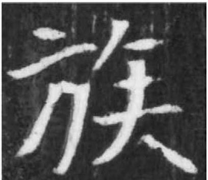 族族,甲骨文作    ,金文作 ,小篆作 。 初文从㫃(yǎn)从矢。裘錫圭説,“㫃”可能是 “旂” 的初文, 故古代表示旗幟意義的字多从㫃。 丁山説,“族”字从㫃从矢會意,“㫃”用以聚衆,“矢”用以攻敵。考古代軍旅或源於部族武裝,故“族” 既指軍旅,也用以指稱部族、氏族、家族、家兵,又引申爲聚合、衆多、品類等義。卜辭、銘文多用軍旅義。提示: 古代軍事組織與家族關係密切,清人八旗制當爲古制孑遺,可作佐證。 楚簡帛文作  ,沿襲古體。秦簡牘文作 ,古隸典型。參見437.遊字條。 族zú (甲) (金) (篆) 会意字,甲骨文画的是弓箭与旗帜,意思是同族的人拿着武器在族旗下集合。古代兵民合一,一个部族便是一个进攻与防御的武装集团。作声符生成的字有: zú 镞(箭镞) cù 簇(簇拥) 蔟(《玉篇》:“蚕蓐也。”) sǒu 嗾(嗾使)