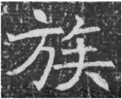 【提示】右下是矢,不要错写成天。 *族zú11画 方部 (1) 同姓的亲属: ~兄|~长(zhǎng)|家~|宗~。 (2) 民族;种族: 汉~|回~|斯拉夫~。 (3) 事物有某种共同属性的一大类: 水~馆|工薪~|追星~|打工~。 (4) 灭族,古代的一种酷刑,将罪犯的整个家族都处死。 族 ☚ 旅 冥部 ☛ 族zú甲骨文以来的会意字。 从㫃(yǎn,也即“旗”的本字),从矢。表示一家族或氏族团结在一旗帜下,用锐利能远射的武器共同御敌。甲骨文或从两矢。也是镞(箭头)的本字。小篆有镞字。族是聚居而有血统关系的人群的统称。如:宗族|家族|氏族。组词如:族类。氏族再发展进步成民族。如:汉族|回族。古汉语有灭(国),诛戮义。引申指事物有共同属性的一大类。如:水族|芳香族。 族★常◎常