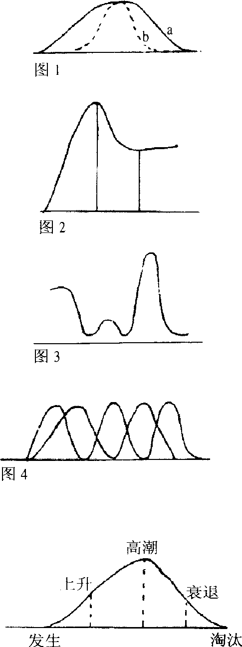 释义 | 时装流行形态 时装流行形态form of fashion根据时装流行逐渐发展过程中的时间和空间的波及范围和速度所划分的形态。主要包括五种: (1)正常流行(见图1曲线a)。流行现象按发生——发展——高潮——衰落—淘汰这五个阶段展开。(2)一时性流行(图1曲线b)。短时间内和小范围内流行,达到高潮和消失都很快,甚至不留痕迹。(3)稳定性流行(图2)。即流行高潮已过,仍在一定程度上保留。例如,牛仔服。(4)反复性流行(图3)。流行时断时续,让人们感觉到新鲜的时间间隔,不一定每一次均在相同的范围和速度中变化。(5)交替性流行(图4)。周期性交替变化的流行。例如,领带的宽窄、裙子的长短。 ☚ 时装传播理论 时装流行要素 ☛ |