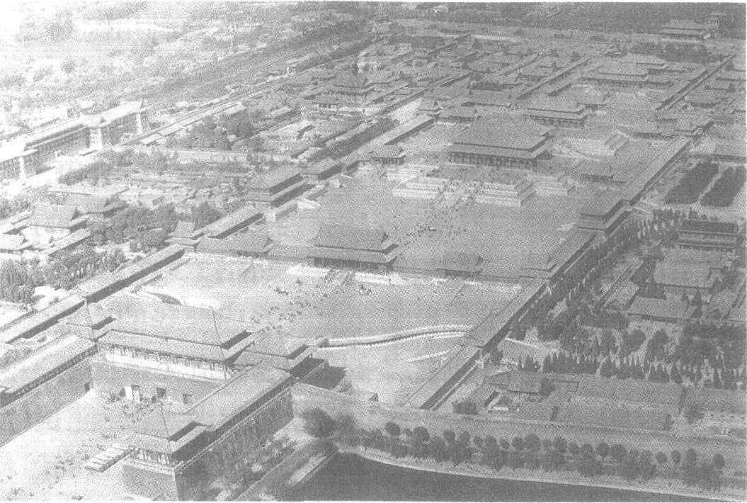 释义 | 明清北京城 031 明清北京城明北京城是在元大都的基础上发展起来的。洪武元年(1368),将元大都北部2.5公里宽的地区划出城外,永乐十七年(1419),将南城城墙南移0.5公里,嘉靖三十二年(1553),又在城南加设一道外城墙,把前门外繁盛的商业区包入城内,形成了凸形平面。清朝北京城的规模与布局没有大的改变,主要是营建苑囿和修建宫殿。明清北京城外城东西长7950米,南北长3100米。城市布局以皇城为中心,其平面呈不规则的方形。皇城之内,建有内容庞杂、数量众多的宫殿、苑囿、坛庙、衙署、寺观、作坊、仓库等建筑。它的核心部分——宫城(紫禁城),位居全城中心。城市的中轴线即宫城的中轴线,全长约为7.5公里,贯穿全城南北,严格地控制着整个城市的布局。这条中轴线以外城南门永定门作为起点,经过内城的南门正阳门、皇城的天安门、端门和紫禁城的午门,以及故宫内的三座门七座殿,出神武门,越过景山中峰和地安门,而止于北端的鼓楼和钟楼。在宫城前,轴线的左侧(东)建太庙,右侧(西)建社稷坛。并在内城外的南面建有天坛,北建地坛,东建日坛,西建月坛。皇城南门天安门前的左右两侧为五府六都等衙署。城市道路系统呈正南北和正东西直交的棋盘形布局。又可分为城市干道和“胡同”两类。胡同为东西向,前后两条胡同间距约50步,在两胡同间的地段再划分住宅基地。由于皇城位于城市中央,因此,内城干道以平行于城市中轴线的左右两街为主,而东西方向的交通不便。北京的市肆相对集中在皇城四侧,并形成了四个商业中心地带:城北鼓楼一带;城东、城西各以东、西四牌楼为中心的地区;城南正阳门外的商业区。 ☚ 明应天府 建筑结构、构造 ☛ 明清北京城 明清北京城明清时期都城。在今北京市区。沿于元大都城址。明洪武元年 (1368年) 攻下元大都,改为北平府。后又为燕王之国。永乐元年(1403年),燕王朱棣即皇帝位 (明成祖),立为京都,改称北京。永乐四年开始改建北京城,至永乐十八年(1420年)告成。其后陆续又有所兴建。清代相沿以为都城,直至宣统三年(1911年)溥仪退位。明初曾将原大都城北部内缩,在今德胜门及安定门一线另筑北垣。后又将原大都城南垣外扩,在今崇文门、正阳门及宣武门一线另筑南垣。东垣、西垣相沿于旧城。据史书记载,其周长四十里,南垣长二千二百九十五丈九尺三寸,东垣长一千七百八十六丈九尺三寸,北垣长二千二百三十二丈四尺五寸,西垣长一千五百六十四丈五尺二寸,高三丈五尺五寸。设城门九座,南垣东为文明门 (正统初改崇文门),中为丽正门(正统初改正阳门),西为顺承门(正统初改宣武门)。西垣南为平则门(正统初改阜成门),北为西直门。北垣西为德胜门,东为安定门。东垣北为东直门,南为齐化门 (正统初改朝阳门)。至嘉靖年间筑重城包京城南面,转抱东、西角楼止,长二十八里,南面长二千四百五十四丈四尺七寸,东面长一千零八十五丈一尺,西面长一千零九十三丈二尺,高二丈。设城门七座,南面东为左安门,中为永定门,西为右安门。东面南为广渠门,北为东便门。西面南为广宁门(清道光年间改广安门),北为西便门。城垣及城门洞在明代已全部用烧砖包砌。皇城位于城中央偏南部,周长约十八里,设门六座,正南为大明门 (清改大清门),其北东为长安左门、西为长安右门,又北东为东安门、西为西安门,正北为北安门 (清改地安门)。皇城内有紫禁城,其南、北城垣各长二百三十六丈二尺,东、西城垣各长三百零二丈九尺五寸,设门八座,正南为承天门(清改天安门),其北为端门,又北为午门,午门东有左掖门、西有右掖门。东垣有东华门,西垣有西华门,正北为玄武门(清改神武门)。紫禁城内前为朝宫,由皇极殿 (清改太和殿)、中极殿 (清改中和殿)、建极殿(清改保和殿)三座大殿组成;后为寝宫,由乾清宫、交泰殿、坤宁宫三座大殿组成。其六座大殿南北连线及其延伸线为全城之南北中轴线。皇城南部围墙以外分置衙署。皇城南端至正阳门之间有棋盘街,为东西城往来通道。城内居民区明代分为三十六坊,清代分为十坊。主要商业繁华区有灯市街、花市街、天桥、大栅栏及宣武门一带。清代在西北郊建有大规模的皇家园林。 ☚ 明中都 兴京 ☛ 明清北京城 明清北京城明代在元大都原址的基础上改扩建而成,包括内、外城。内城东西墙沿用元大都的城垣,放弃北城墙,南移5公里至今天北京的德胜门、安定门 一带,原南城墙亦南移0.5公里,形成东西宽6635m,南北长5350m的内城,嘉靖年间(1522—1566年)在内城南垣外逐渐形成大片居住区和市肆,为加强城防在外围修筑了外城墙,东西长2950m,南北宽3100m,形成北京凸字形的城市轮廓,都城在南移中平毁了元大都宫殿群,在元大都的主要宫殿延春阁上堆成一座高50余米的土山——万寿山(清朝改名为景山)以镇元朝王气,成为城市南北主轴线中的至高点,宫城居中在城市中轴线上,为历朝皇帝居住和听政的地方,外筑皇城,自南面外城墙永定门起,到正阳门,经过大清门(明朝原称大明门)、天安门、端门、午门,穿过宫城主要宫殿群和宫城外景山,经过皇城的北门地安门,到中轴线的终点鼓楼和钟楼,轴线全长约8公里,气势恢弘,沿轴线空间层次分明,开合变化高潮迭起,是中国古代城市规划和空间设计的杰作。 明清北京城 ☚ 元大都 秦陵 ☛ |