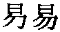 (二)粵 ji6〔義〕普 yì ❶ 容易,有成語「〜如反掌」。蘇洵《六國論》:「當與秦相較,或未〜量。」 ❷ 輕視,小看。柳宗元《童區寄傳》:「賊〜之,對飲酒醉。」