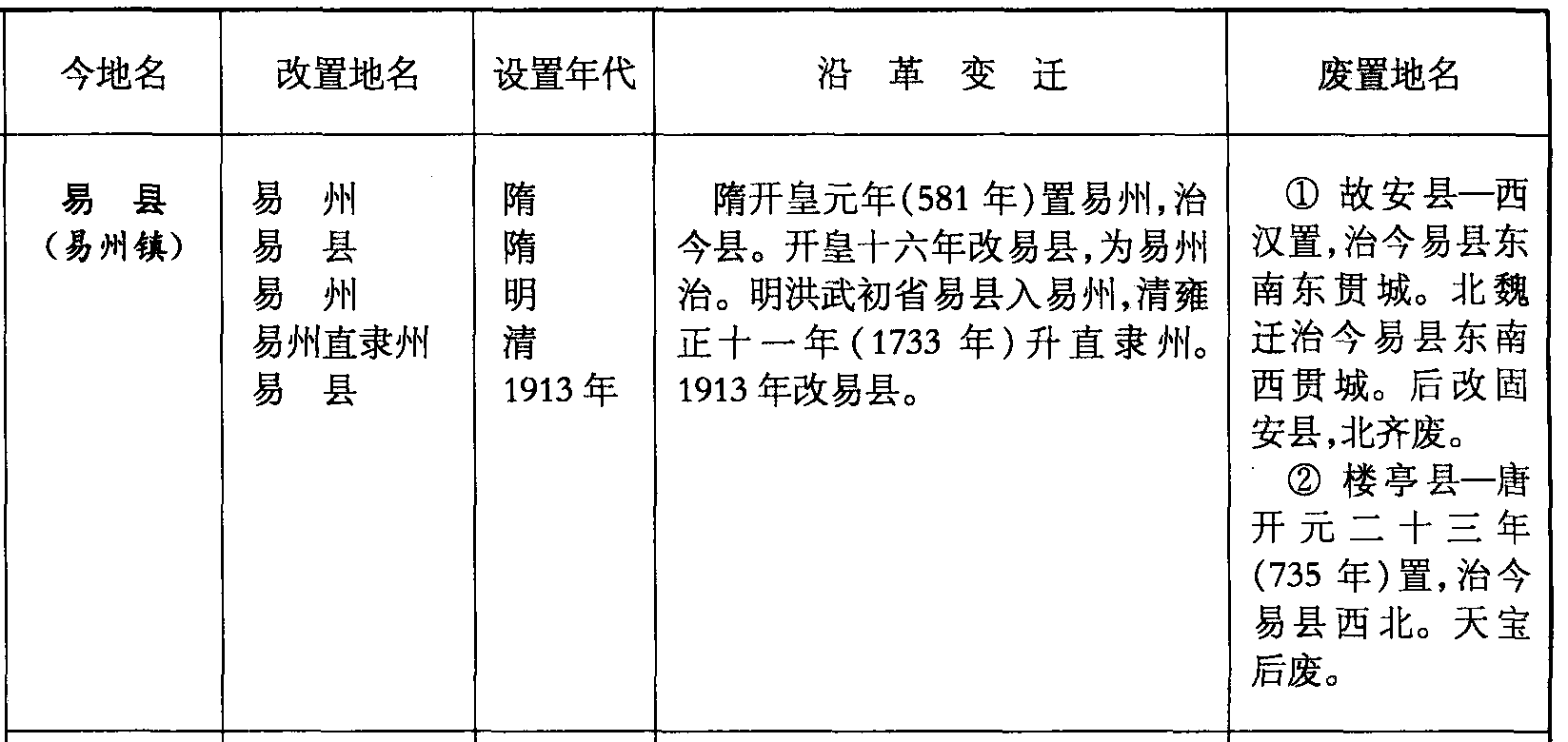 易县(易州镇)易州易县易州易州直隶州易县隋隋明清1913年隋开皇元年(581年)置易州,治今县。开皇十六年改易县,为易州治。明洪武初省易县入易州,清雍正十一年(1733年)升直隶州。1913年改易县。❶ 故安县—西汉置,治今易县东南东贯城。北魏迁治今易县东南西贯城。后改固安县,北齐废。❷ 楼亭县—唐开元二十三年(735年)置,治今易县西北。天宝后废。