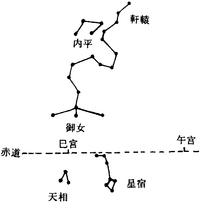 古代名物 > 天象類 > 天體部 > 二十八宿 > 星宿 星宿 xīngxiù 亦稱“星”、“星鳥”。星座名。南方朱雀之第四宿。有星七顆。位於柳宿東南,屬長蛇座。形狀如鈎。其分野爲周,屬三河。《書·堯典》:“日中星鳥。”孔穎達疏:“則初昏之時,井、鬼在午,柳、星、張在已,軫、翼在辰。”《淮南子·天文訓》“五星、八風、二十八宿”高誘注:“南方:井、鬼、柳、星、張、翼、軫也。”晉·成公綏《天地賦》:“玄龜匿首於女虛,朱鳥奮翼於星張。”《宋史·天文志四》:“武密曰:‘彗星出七星,狀如杵,爲兵。”星孛于星,有亂兵起宫殿。”亦爲天區名。按《步天歌》,除主體星座星宿外,尚有天相、天稷、軒轅、内平等,凡五。原星三十六顆,增星九十六顆。