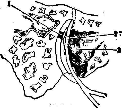 手术在局部或全身麻醉下进行。按病因和听力情况采用不同的进路。中耳炎或乳突手术外伤所致面瘫,一般通过常用的乳突手术进路,首先探查水平段面神经,在显微镜下寻找神经骨管有无缺损。炎症和手术外伤所致病损常在水平段。探查时常见暴露的神经红肿。若无神经断裂,则从缺损处用小刮匙分别向远、近端剥除骨管外侧一半管壁,剥除范围以正常神经至少暴露5mm为度。然后用小镰刀沿神经长轴挑开鞘膜以资充分减压。病变严重者应上至膝状神经节,下至并包括茎乳孔全程减压。若有神经缺损,则须将残缺不齐的两断端削平,从股外侧皮神经或耳大神经割取长短适当的神经一根并移植于两断端间的骨沟内,连接处须正确对合,一般不必缝合(图1)。若神经缺损不多,可行改道吻合术(图2)。