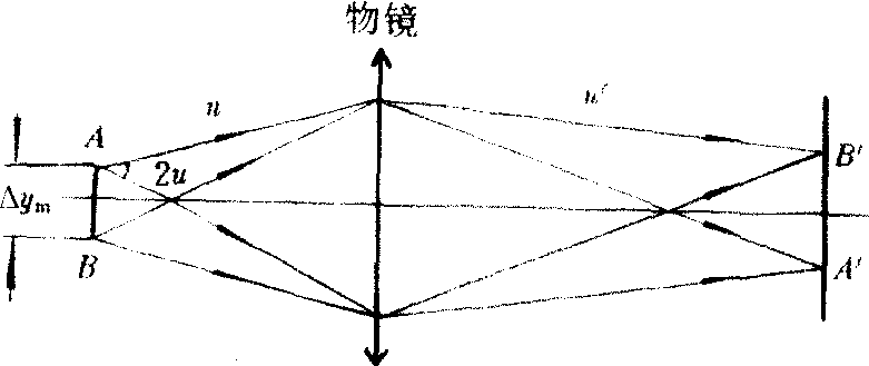 显微镜分辨两个邻近物点的能力。指物镜的分辨本领。用刚好能分辨的近处两个物点之间的距离来量度,这一距离称为显微镜的最小分辨距离,用△ym表示。△ym愈小,其分辨本领愈大。根据瑞利判据及爱里斑的半角宽公式,并考虑到显微镜工作在不晕点的情况,可导出显微镜最小分辨距离的公式为△ym≈0.61λ/nsinu,n为物方折射率,u为入射光束的半孔径角,λ为光在真空中的波长。nsinu称为数值孔径,用N.A.表示(见孔径)。为了减小最小分辨距离△ym以提高分辨本领,可采取两种途径,一是增大数值孔径,二是减小光的波长。采用油浸镜头可使数值孔径超过1.4,但很难达到1.5,所以△ym大致可达到0.5λ,在可见光波段,△ym约为0.2微米。为进一步提高分辨本领,最有效的方法是使用更短波长的非可见光,例如使用紫外线的显微镜,它的最小分辨距离可小至0.1微米。近代电子显微镜使用高速电子束成像,电子束的波长可达到0.1纳米的数量级,其最小分辨距离已小到0.2纳米,分辨本领比光学显微镜高一千倍。