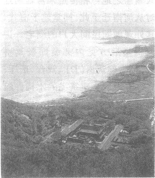 位于浙江省普陀县。始建于明万历八年(公元1580年),康熙三十八年(公元1699年)重建,后代又有增建。建筑群背山起势,层层升高。现有殿宇294间,分列在六层台基上。主要建筑有天王殿、玉佛殿、圆通殿、大雄宝殿、藏经楼等,其中最为著名的是圆通殿。圆通殿又名九龙殿,清黄应熊在《重建普陀前后寺记》中载:“其殿盖九龙盘拱及黄瓦,亦圣祖命拆金陵旧殿以赐者,故又呼九龙殿”,由此可知其九龙藻井和部分琉璃瓦是从南京明代宫殿拆迁而来。整个法雨禅寺殿堂楼阁规模宏伟,再配以清幽的山水,不愧为我国的名刹。