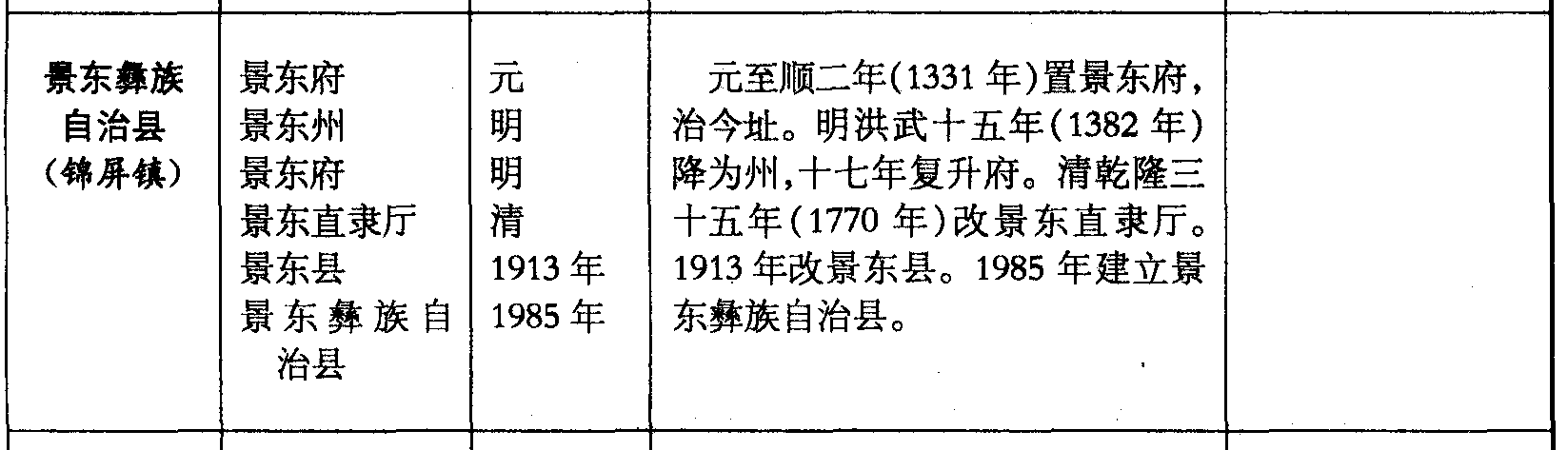 景东彝族自治县(锦屏镇)景东府景东州景东府景东直隶厅景东县景东彝族自治县元明明清1913年1985年元至顺二年(1331年)置景东府,治今址。明洪武十五年(1382年)降为州,十七年复升府。清乾隆三十五年(1770年)改景东直隶厅。1913年改景东县。1985年建立景东彝族自治县。