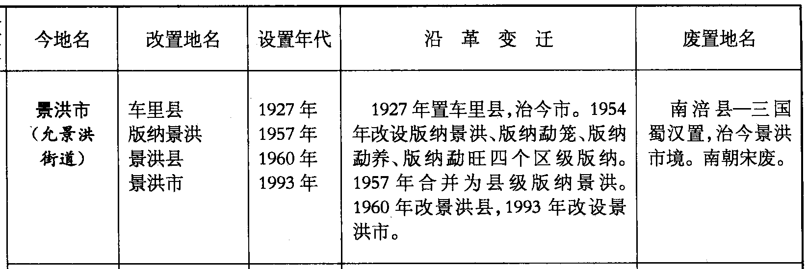 景洪市(允景洪街道)车里县版纳景洪景洪县景洪市1927年1957年1960年1993年1927年置车里县,治今市。1954年改设版纳景洪、版纳勐笼、版纳勐养、版纳勐旺四个区级版纳。1957年合并为县级版纳景洪。1960年改景洪县,1993年改设景洪市。南涪县—三国蜀汉置,治今景洪市境。南朝宋废。