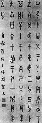 释义 | 临殷契文轴 【简介】: 近代·罗振玉。纸本。篆书。五行。98.8×32.7cm。日本东京知丈印社藏。刊于日本《书道全集》(24)。 【赏析】: 此幅作品是罗振玉临写殷契文字。罗振玉是我国近代著名的学者,对甲骨文的考订、发掘做出过重大的贡献。早年书学颜眞卿,用功至勤。此幅作品的风格淸雅、淳厚,与殷代末期甲骨文的风格相近。 从书法艺术的角度来看,此幅作品点画平正、均衡,字形方正、整齐,给人以稳定感。从线条来看,多骨少肉,给人以瘦劲淸挺的美感。这种骨力偏多的线条反映出甲骨文用刀刻的意趣。怎样书写这种骨力偏多的线条呢?这主要是笔法的问题。罗氏书写甲骨文的用笔,掺入了西周初期金文的用笔方法,也即是“提笔中含”的篆书笔法。具体说,就是露锋而入,落笔按实,很快就提笔(这裏所说的提笔,不是提笔离开纸面,而只是笔毫著纸较轻而已)过笔时用中锋运笔,收笔时或出锋,或驻笔平出即可。这样的线条才能比较充实而有凝重之感。怎样表现出坚劲的笔意呢?这主要是运笔要稳,运向什么方向,运到何处止,都要“意在笔先”,同时运笔的速度、笔毫中含墨的多少,都将决定线条的质感。因此,有人说临习甲骨文字,久之能却肥弱之病,这是有道理的。另外,从此幅作品中可以看到,笔画之间的连接,多用方折,也有用圆转的,给人以灵便之感,这也是刻写的特点。 |
