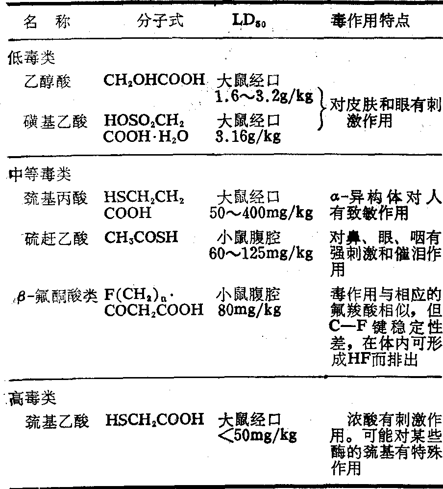 释义 | 有机酸化合物 有机酸化合物有机酸均含有羧基(—COOH),故亦称羧酸,以脂肪酸及其衍生物为主。饱和脂肪族一元酸结构通式为CnH2nO2,10个碳原子以下者在常温下为液态,可溶于水,溶解度随链长度增加而降低。自然存在的不饱和脂肪酸在常温下亦为液态,一般不溶于水。多元酸含一个以上的羧基,二羧酸类在室温下为结晶,熔点较高。 取代脂肪族单羧酸类毒物 卤代羧酸类 属低毒类的有二氯乙酸(CHCl2 COOH)和三氯乙酸(CCl3COOH),大鼠经口LD50为3~4.5g/kg,主要对皮肤有刺激作用。三氯乙酸为强酸,对组织有灼伤作用。 属中等毒类的有氯乙酸 (ClCH2COOH)、溴乙酸(BrCH2COOH)、碘乙酸 (ICH2COOH) 和三氟乙酸(CF3COOH)等,大鼠经口LD50分别为76、100、83及200~400mg/kg。毒作用均以刺激作用及皮肤灼伤为主。氯乙酸及碘乙酸能与某些酶的巯基结合,从而抑制该酶的活性。动物实验,三氟乙酸引起肝脏脂肪变性及肝糖原和某些酶活力降低。 属高毒类的有氟乙酸(FCH2COOH),系无色固体,易溶于酒精。其钠盐氟乙酸钠为白色粉末,溶于水,商业名1080。均为杀鼠剂。死鼠尸体解剖所得剩余毒物不易分解破坏,长期内仍有毒。氟乙酸钠腹腔注射时的LD50大鼠为5mg/kg,小鼠为7mg/kg。对人的估计致死量为2~10mg/kg。氟乙酸的毒作用主要由于体内致死合成(参见“脂肪族卤代烃类”)。动物实验中,主要引起中枢神经系统和心脏损害。表现有进行性抑制,和心室纤维性颤动,可因反复抽搐和对呼吸中枢缺氧性损害而致死。 醋精 (甘油醋酸脂)或乙酰胺对氟乙酸中毒有一定疗效。其作用为释放大量乙酸,与氟乙酸进行竞争,防止形成氟乙酰辅酶A,故应及早应用。 单氟羧酸类[F(CH2)nCOOH]为无色液体或固体。分子中氟原子极为稳定。易溶于水。挥发性低。单氟羧酸及其衍生物,在体内经β-氧化降解。碳原子数为奇数者,经β-氧化生成氟丙酸或其他低毒代谢物,毒性较低。碳原子数为偶数者,经β-氧化生成氟乙酸,毒性即高,即引起致死合成。但长链氟羧酸的脂溶性大,易透过细胞膜,在细胞内形成更高浓度的氟乙酰辅酶A,干扰相应的非氟脂肪酸的代谢,故毒性往往比氟乙酸更大。 氟癸酸引起肾脏内柠檬酸量增高的剂量为0.0006mg,而氟乙酸盐需要0.025mg才引起同等效应;长链偶数碳原子的氟羧酸引起柠檬酸积聚的量,也比氟乙酸引起的多。 脂肪族多羧酸类 多为低毒或实际无毒。许多品种在体内参与正常代谢,长期接触并无危害。大鼠经口LD50均在1g/kg以上,仅在高浓度时对皮肤粘膜有刺激作用。草酸(乙二酸)(HOOC—COOH·2H2O)溶液或粉尘可引起皮肤和粘膜严重刺激。长期接触5~10%草酸溶液有刺激性。口服可致胃肠道炎症反应,肾脏损害,肾小管腔内有草酸钙沉着。草酸根存在于正常代谢过程中。食物中存在的量无害。 酒石酸[HOOC (CHOH)2·COOH·H2O]的酸性较强,能引起局部损害,并对牙齿有腐蚀作用。顺丁烯二酸(马来酸) [(:CHCO2H)2]除对皮肤粘膜有刺激作用外,还可抑制含巯基的酶。 环烷酸类 为石油中各种环烷衍生物,通式是CnH2n-2O2到CnH2n-10O2。商品通常是粘滞液状。粗制品有强烈气味。精制后气味降低。从粗制煤油衍生而得的环烷酸,大鼠经口LD50约3g/kg;粗混合酸大鼠经口LD50为5.2g/kg。环烷酸金属盐 (钴、铜、钙、铅、锰和锌)的大鼠经口LD50为4~6g/kg以上。环烷酸苯基汞毒性较高,大鼠经口LD50为0.4g/kg。未见有对人损害的报道。 芳香族酸类 属低毒类。在一般情况下接触,无明显的危险性,有的甚至是相对惰性的。本类化合物能以原形或与甘氨酸、葡糖醛酸结合的形式很快从尿中排出,无蓄积作用。对皮肤渗透力弱,一般不引起过敏反应。有一定的刺激作用,其中邻-羟基苯甲酸、苯磺酸及其衍生物对皮肤、眼睛有强烈刺激。热的蒸气或升华的蒸气对上呼吸道、眼睛和皮肤也产生刺激。 酸酐[R(CO)2O] 大部分为无色液体,有刺激气味。主要用于合成纤维、树脂和塑料生产。 属低毒类。很易与水反应生成原来的酸,因此毒性一般与相应的酸相似,主要对皮肤、粘膜有刺激。丙酸酐、丁酸酐等的蒸气对眼睛刺激性较酸更强,常可引起顽固的结膜炎。酸酐能和蛋白质的氨基起反应,因此可发生过敏反应。顺丁烯二酐(马来酐)[(:CHCO)2O]大鼠经口LD50为0.4~0.8g/kg。邻苯二酸酐 [酞酐,C6H4(CO)2O],大鼠经口LD50为0.8~1.6g/kg。其他酐的毒性更低。酸酐在体内的转归与相应的酸相同。未见蓄积毒性。 内酯类 在常温下大多为液体。能与水、乙醇等混溶。除β-丙内酯 ![]() 酰基卤类 大多是比重大于1的液体,溶于水并能迅速水解,产生相应的有机酸和无机酸。活性大,随分子量增加而活性减低。在潮湿的粘膜上能分解为新生的卤化氢和相应的有机酸。对皮肤和粘膜可产生强烈的原发刺激,甚至形成皮肤疱疹,并可致敏。其中某些化合物如甲苯磺酰氯可引起迟发性较深层疱疹。如原来的有机酸有全身毒作用如乙二酸,则相应酰基卤草酰氯和苯酰氯亦有全身毒作用;如原来的有机酸有蓄积作用如氯乙酸,则其相应的酰基卤氯乙酰氯亦有蓄积作用。 酰胺类 一般可经呼吸道、消化道和皮肤吸收。各类酰胺的毒性差别亦大。简单的羧基酰胺除甲酰胺外,对皮肤粘膜无刺激,在生产环境中以任何形式接触,均无明显危害,无蓄积和其他毒作用,能在肝脏内经非特异性的酰胺酶作用,水解为相应的酸或以原形从尿中排出。甲酰胺对皮肤有轻微刺激性,偶可引起过敏,并能经皮吸收。 有些不