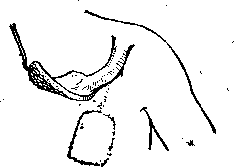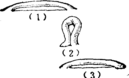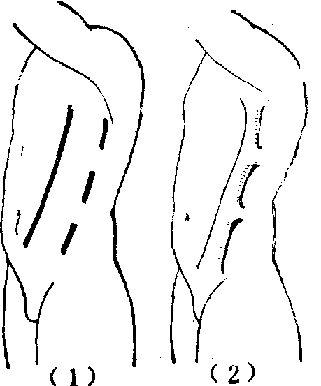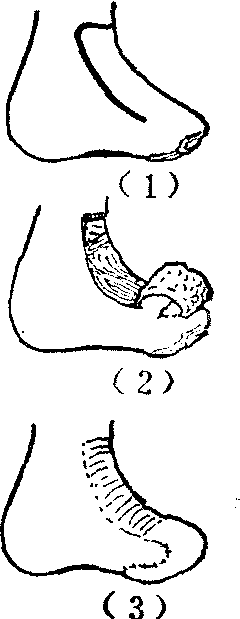 释义 | 有蒂皮肤移植术 有蒂皮肤移植术将皮瓣或皮管,从供皮区移植至受皮区的全部手术过程,称为有蒂皮肤移植术,通常简称有蒂植皮术。包括术前计划、形成、移转、断蒂等主要操作步骤,以及术后处置和术后并发症的处置。无创技术操作,是进行有蒂植皮术每一操作步骤所必须严格遵守的重要原则之一。 图1 胸肩峰皮管的胸端连接皮瓣 (4) 采用皮瓣或皮管修复,术前都须依靠逆转设计法,又称试样法,进行准确周密的设计。此法为Gillies于1932年所首创,沿用至今。设计前,先须准确判断缺损的大小和形状,有瘢痕挛缩或组织错位的缺损畸形,尤须仔细观测与健侧反复对比,以免判断失误,而致设计出现偏差。兹以皮瓣修复为例说明逆转设计法的具体步骤。取稍能伸缩与皮肤弹性略似的物质,如布片、橡皮膏的衬纱做为试样材料,其中以衬纱较好,既稍能伸缩,且可透过较大网孔进行观察。就需修复部位多次测试,剪出皮瓣的样型,样型应略较缺损为大,如为延迟或间接移转时,更需适当放大,以补偿分期多次手术中的损耗。选样型的适当部位为蒂,按照与预定手术步骤相反的程序,将皮瓣的样型逐步落实至选定的供皮部位,用龙胆紫溶液标画在皮肤上(图2)。皮管的设计,其原则与皮瓣相同。移转过程中需要体位制动的皮瓣或皮管,应注意所取制动姿势是否顺应或接近自然体态,蒂的长度、方位是否恰当,有无张力或旋扭、折屈等。 图2 皮瓣逆转设计法示意 皮瓣或皮管的形成 沿用龙胆紫溶液画出的皮瓣或皮管的轮廓,根据手术总体规划切开皮肤,深度一般达深筋膜的浅面,然后进行皮下剥离,即可在一次或几次手术内形成皮瓣,或形成皮管(参见“皮管”)。 皮瓣或皮管的移转 皮瓣或皮管形成后,移植至受皮部位的步骤,称为移转。有即时移转或延迟移转,直接移转或间接移转等不同方式。 (1) 即时移转,即皮瓣于形成后立即移转,形成与移转两个步骤在同一次手术内完成。即时移转仅限于皮瓣。在由肌皮动脉供血的皮肤区域所形成的随意型皮瓣,长宽比值不大于1,且皮瓣的长度或面积不过大,远端不超越躯体的中线太多时,可行即时移转。在特殊解剖部位,如头、面、颈等血管分布丰富区域的皮肤,长度可适当地大于其宽度。在由直接皮肤动脉供血的皮肤区域所形成的轴型皮瓣,其长度只受该血管走行及长度的限制,甚至可在其远端另连接一长宽比例在规定限度内的随意型皮瓣,长度超出宽度很多,仍可即时移转。岛状皮瓣、游离皮瓣也都系即时移转的皮瓣。新鲜创伤的即时修复,只能采用即时移转的方式。 (2) 延迟移转,即形成与移转两个步骤不能在同一次手术内完成,甚至仅是形成步骤就需经一次以上手术。皮管的应用均属延迟移转。 延迟的目的,在于调整充实皮瓣或皮管的血运供应状况。凡疑有血运不足时,均应延迟移转。一般情况下,延迟,主要由长宽差异决定。随意型皮瓣,长度大于宽度,或长度虽不大于宽度但皮瓣过大时,如非在头颈部位,均需延迟移转。这是由于皮瓣内不包含主轴知名血管束,血管内灌注压较低之故,纵不超过规定的可以即时移转的长宽比值限度,仍难满足远端有足够的供血。缝制成皮管的双蒂皮瓣,如不包含有主轴知名血管束,而长度超过宽度的2.5~3倍以上,或虽在上述规定的限度内,但长度过大时,均需经一次或一次以上的延迟手术才能缝制成完整的皮管。在某些特殊情况下,皮瓣或皮管,虽不违背上述规定的各项约束条件,也都需行延迟手术: ❶供皮区曾被烧伤而有表浅瘢痕时; ❷皮瓣长轴与所在供皮部位的主要血管走向垂直或呈较大的交角,或与动脉流向相反,如四肢上蒂在侧方的横位、斜位,或蒂在远方的逆向皮瓣; ❸跨越躯体中线较多时; ❹移转中,蒂部将发生难以避免的旋扭或折屈,或远端将处于低垂位置时。 延迟的方法,皮瓣与皮管不同。皮瓣的延迟,除蒂部外,或缘皮瓣的周缘切开,深及深筋膜的表面,不行或仅略行皮下潜行剥离。也或不将皮瓣的周缘完全切开,但皮瓣的全部均行皮下剥离。然后重将皮肤切口原位缝合(图3)。 图3 皮瓣的延迟法 皮管的延迟与皮瓣不同,皮管的制成,可视为一种特殊的延迟方式。当不能一次完整缝成皮管的情况下,需采用留“桥”的延迟方法,其法,为于一侧切口的中央,保留一段暂不切开称之为“桥”的部分,剥离后,缝成除两蒂外尚以“桥”与供皮区相连的不完整皮管,下次手术,再将“桥”离断以缝成完整的皮管。“桥”的长短根据形成皮管的皮瓣的长宽比例差异的大小决定。有时也可以留置两个“桥”(图4)。还有先形成在同一轴线上两个有短的间隔的皮管,以后再相连为一的方法。 图4 皮管留置两个“桥”的延迟法 延迟后充分生效时间,或长宽差异较大需经一次以上延迟手术时的间隔时间,均为10~14日,时间过短,延迟的效应尚未充分达到,太长,则延迟效应的高峰已过且日趋衰减。但皮管的断“桥”手术,时间延长并无妨害。 延迟的效应,主要表现为皮瓣或皮管内真皮、真皮下、皮下血管通路和血流方向的调整顺位,以及血管管腔的扩张等内在变化。由此逐渐形成一个以蒂为基础,与皮瓣或皮管纵轴一致的新的血液循环体系,足以有效地保证其每一部位都有可靠的血流供应(图5)。通过延迟,皮瓣或皮管并无血管数量的增加,即无血管的新生。也没有外在的可见改变。也有人认为,延迟的效应在于提高组织对缺氧
