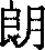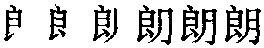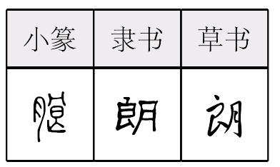 【提示】, 6画, 第五笔是竖提,不是一竖、一提两笔,第六笔是点; 旧字形7画,右下为一撇、一点;中间一横宋体与左右两边相接,楷体与左边相接,与右边相离。月,中间两横宋体与左右两边相接,楷体与左边相接,与右边相离。 *朗lǎng10画 月部 (1) 明亮;光线充足: 明~|晴~|天~气清|豁然开~。 (2) 声音清晰响亮: ~读|~诵|~声回答。 (3) 明快: 爽~|豁~|性情开~。 朗 ☚ 霸 期 ☛ 朗lǎng古代形声字。小篆左形右声。汉代以后有右形左声的。中古以后定形,右形左声。作朗,从月,良声。音变如良郎狼浪例。明亮义。如:晴朗|天朗气清。组词如:明朗|开朗。引申指声音清楚,响亮。如:朗诵|朗读。 朗★常◎常