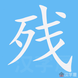 释义 | 残 1 (殘)★★★ 01220名![]() (殘) ❶ 不完整;缺少一部分: 身~志坚|~缺不全。 完 wán ~整|~好|覆巢之下无~卵。 全 quán 周~|保~|~身而退。 ❷ 临近结束的: ~冬|他已是一个风烛~年的老人了。 早 zǎo ~春二月|他~年曾随考察队去过大西北。 初 chū ~始阶段|~生牛犊不怕虎|~学一项技艺,难免出点差错。 ❸ 凶恶狠毒: ~暴|凶~|~酷。 仁 rén ~爱|~至义尽。 慈 cí 心~手软|~眉善目|~母的教诲时时在耳边回响。 善 shàn 一片~意|一个人活在世上应多做~事。 不完整,残废。可用于“把”字句和“被”字句。 a.作谓语。 身~志更坚。 b.作补语。 小时候,地主的狗腿子把他的脚打~了|在一次车祸中,她的手被撞~了。 残疾人。常构成“老弱病残”作句子成分。 a.作主语。 老弱病~感叹“社会主义好”。 b.作宾语。 各级组织要多关心和照顾老弱病~|当前,广大农村忙于春耕生产,家中留下的多为老弱病~。 【近】 〈形〉缺 【词语】 残败 残喘 残存 残冬 残骸 残害 残疾 残疾人 残局 残留 残年 残品 残破 残缺 残杀 残生 残阳 残余 残照 残渣余孽 字源解说 “戔”是“殘”的本字。戔,甲骨文 ![]() ![]() ![]() ![]() ![]() ![]() ![]() ![]() ![]() ![]() ![]() ![]() ![]() ![]() ![]() ![]() ![]() ![]() ![]() ![]() 附 文言版《説文解字》:殘,賊也。从歺,戔聲。 附 白话版《说文解字》:残,残害。字形采用“歹”作边旁,采用“戋”作声旁。 引申线索 ![]() 【字族索引】 戋 【同音字】 cán |