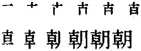 表意,甲骨文1从日、月、木(或林),甲骨文2把木改为艸,表示月尚未完全落下,而日已出于草木丛中之时,金文把月讹为川(或水),小篆又讹为舟,隶定为“朝”。本义读zhāo,早晨,引申为日或天(指时间)。朝气,奋发向上、积极进取的精神状态。又读cháo,古代臣子在早晨拜见君主,故引申为朝拜、朝见,又引申为朝廷(古代君主处理政务的地方)、朝代(建立国号的君主统治的整个时期)、面向、正对着、介词(引入动作的对象,相当于“对”“向”)等。 【辨析】 ❶潮/朝(zhāo) “朝”指早晨,“潮”指早晨上涨的海水,这两个字音义相近,是同源字。 ❷朝(cháo)/向 这两个字都用于介词,引入动作的方向,区别在于:“向”可以用在动词后,如“奔向远方”“从胜利走向胜利”,而“朝”却不能这样用。朝 甲 金 篆 隶zhāo【析形】会意字。甲骨文字形从日,从月,从艸(或从二木),表示太阳升起的时候,月亮还没有落下。金文字形借潮的本字为之。小篆字形讹从舟,隶书字形变后又恢复从月。 【释义】《说文》:“旦也。”本义指早晨。早晨是一天的开始,所以“朝”(zhāo)又有开始的意思。[朝思暮想]早晨也想,晚上也想。形容想念殷切,思虑不已。又因为古时候臣子拜见君主一般在早晨,所以引申指朝(cháo)见、朝廷等义。读为cháo[一朝天子一朝臣]谓当权者变动,下属亦随同变动。 【shape analysis】It is the associative character. In Oracle, the character meaning is related to 日,月 and 艹.It means when the sun rises, the moon does not set down. The character in Bronze Inscriptions is the primitive form of 潮. In Small Seal script ,one of the character meaning parts developed into 舟,while when it came to Official script, the part returned to 月. 【original meaning】 The start of a day,morning. 朝 ☚ 喬 猋 ☛ 朝〈动〉招架;抵挡。 《聊·快曲》四: 两个汉子齐来斗,俺老爷一杆长枪把他~。又 《富》十二: 中一个进士也不差,声势微尽可~李大,咱不怕他。参看〖招〗 ❸。 <方>今山东淄川、桓台、青州、新泰话有此语。 另见zhāo(“朝不保暮”等)。 |