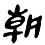 朝cháo❶ 臣早晨拜见君主,朝见。《左传·宣公二年》:“(宣子)盛服将~,尚早,坐而假寐。”《廉颇蔺相如列传》:“相如每~时,常称病,不欲与廉颇争列。”宋濂《送东阳马生序》:“余~京师,生以乡人子谒余。”泛指拜见。《韩非子·五蠹》:“割地而~者三十有六国。”贾谊《过秦论》:“强国请服,弱国入~。”使动用法,使……朝见(拜见)。《孟子·公孙丑上》:“武丁~诸侯,有天下。”贾谊《过秦论》:“序八州而~同列。” ❷ 朝廷。《邹忌讽齐王纳谏》:“于是入~见威王。”《齐桓晋文之事》:“使天下之仕者皆欲立于王之~。” ❸ 朝代。指整个王朝或某一皇帝统治的时期。杜甫《蜀相》:“三顾频烦天下计,两~开济老臣心。”杜牧《赤壁》:“折戟沉沙铁未消,自将磨洗认前~。” ❹ 对着,向着。李白《江西送友人之罗浮》:“桂水分五岭,衡山~九嶷。” 另见897页zhāo。 朝*B3AF (一)chao❶古代臣子见君王或宗教徒参拜神佛:~拜/~觐/~山/~圣/~贡。 ❷朝廷:~政/~野/~纲/上~/得胜回~。 ❸朝代:王~/唐~/改~换代/六~绮罗成旧梦,石头城上月如钩。 ❹向,面对着:~阳/~东/坐南~北/~着胜利奋勇前进。 ❺姓。 (二)zhao❶早晨:~阳/~霞/~露/~三暮四/~不保夕/~思暮想/~令夕改/只争~夕/~辞白帝彩云间,千里江陵一日还。 ❷天,日:有~一日/一~权在手,便把令来行/数风流人物,还看今~。 向着 向着向(~东;~天;指向;走~;~壁虚构) 往(~西) 望(~北走)冲(~墙) 当(~空;~众) 兜(~头一击) 于(问道~盲) 为(不足~外人道) 遡 迤(一路~西) 对(针~;相~) 朝(朝着;~东) 向着对方的面:迎面 对头 劈面 劈脸 向南:朝南 负斗 向北:朝北 朝着太阳:向阳 向明 面对着屋子的一个角落:向隅 趋隅 朝着高处:向上 朝着一个目标或一个方向:一向 (表示动作的方向:向着)