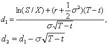 F(S,t)=SN(d1)-Xe-r(T-t)N(d2) (2)