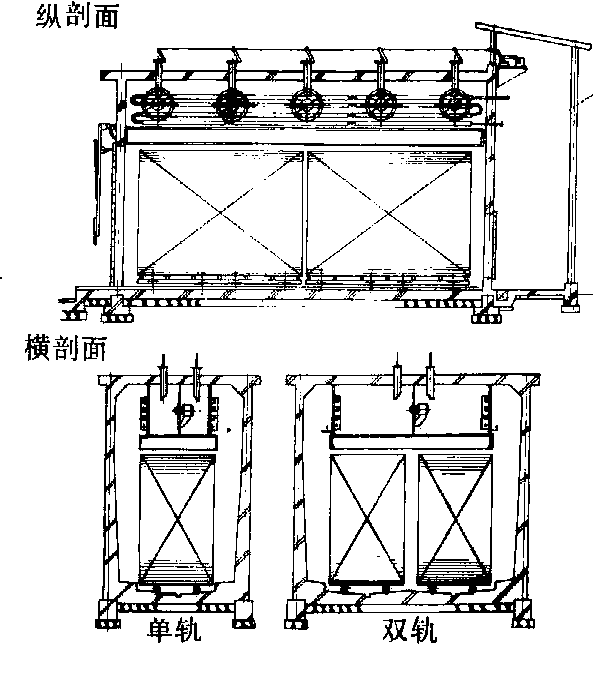 释义 | 木材干燥窑wood drying kiln可以根据工艺要求调节和控制温、湿度及气流速度的专门用于干燥木材的建筑物或金属容器。有连续式干燥窑和周期式干燥窑两大类。 上部风机式干燥窑图 上部风机式横轴型 由“假天棚”分成风机间和干燥间。每台轴流风机单独横向安装,每台风机配一台电机,从而消除了长轴易发生故障的缺点,并提高了气流循环效果和干燥均匀性。但因风机间在上部,安装和维修不方便。 侧面风机式 风机和加热器布置在窑的侧边。风机直径接近于材堆的高度,气流横向水平循环(每循环一次通过材堆两次)。该窑型安装维修方便,但需要较大直径的风机,使材堆高度受到限制。 侧下风机式 风机装在窑的一侧下方,气流在材堆上半部和下半部横向循环。与侧面风机式的不同之处是风机直径只接近材堆高度的一半,结构较为简单,安装、维修及操作方便,是中、小型企业应用较普遍的窑型之一。 端部风机式斜壁型 风机装在窑后端部的风机间,气流横向水平循环。为了合理分配气流,干燥间两侧壁自后(或中)至前逐渐向内倾斜。该窑型结构简单,安装及维修方便,是比较好的窑型,适用于中、小型企业。 喷气式 窑内上部装有配气道和喷嘴组成的喷气装置。由配气道后端的轴流风机或装在窑外经吸气管和压气管与窑内联通的离心风机将干燥介质压入喷气装置,喷射气流实现强制循环。这种窑结构复杂,往往因喷气装置的制造与安装不精确而使干燥效果很差,现已较少采用。 干燥窑的选用和设计应根据各种窑型特点,结合被干木料的树种、规格、数量、干燥质量要求及自然条件等决定。干燥窑应具有足够的加热能力和气流循环速度,并有良好的保温、气密和耐腐蚀性能及必要的监测装置。窑内温度场和气流速度场应分布均匀,操作应方便、灵活、可靠。 木材干燥窑wood drying kiln用于木材干燥的特制建筑物或金属容器。内部设置通风、加热、调温及调湿等设备,用以控制干燥介质的温度、湿度及气流速度。在干燥窑内可以人为地控制木材的终含水率。木材干燥窑的种类较多,常见的有周期式强制循环干燥窑、连续式强制循环干燥窑、周期式自然循环干燥窑等。 |