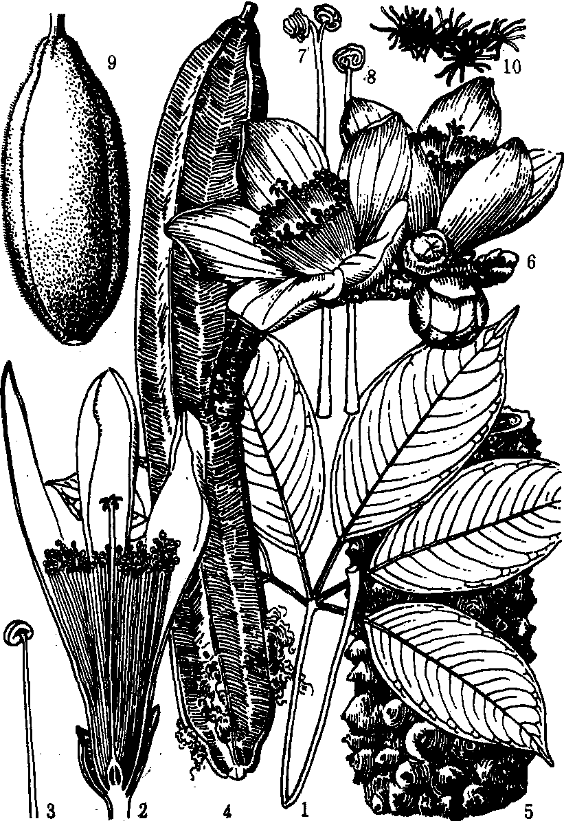 释义 | 木棉科Bombacaceae双子叶植物,隶属锦葵目。20属,180种,广布热带地区,主产热带美洲。中国5属,6种,主产云南、广东和广西。 长果木棉与木棉 (1~4.长果木棉; 5~10.木棉) 木棉科bombax family;Bombacaceae双子叶植物,落叶乔木。x=28,36,40。树干粗,有的具脱落的刺。单叶或掌状复叶,互生,托叶早落。花两性,通常大型而美丽,单生叶腋,或聚生于与叶对生的部位;花萼杯状,顶部截平或不规则3~5裂;花瓣5枚,稀无花瓣;雄蕊5枚或多数,分离或合生成管,花粉常3孔,稀为散孔,表面平滑或有网状皱纹,稀有小刺;子房上位,2~5室,胚珠2或多数。蒴果。种子常有绵毛、无胚乳。共20属,180种,广布热带地区,主产热带美洲。中国5属,6种,主产云南、广东和广西。木棉除供观赏外,种子绵毛可作垫褥或救生器填料;轻木〔Ochroma pyramidale(Cav.ex Lam.)Urban〕,原产热带美洲和西印度群岛,中国台湾和云南有栽培,木材轻,为制造飞机用材之一。 |