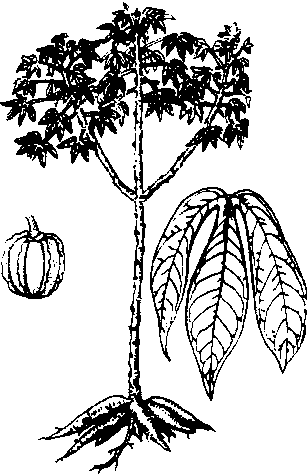 释义 | ![]() ![]() ![]() ![]() ![]() 木薯cassavaManihot esculenta Crantz.,又称树薯。大戟科,木薯属。多年生亚灌木。热带和亚热带地区重要的粮食和饲料作物。原产热带美洲,16世纪传入非洲,18世纪传入亚洲。主产国有巴西、泰国、刚果、印度尼西亚等。中国于19世纪20年代引种,以广东、广西种植较多。块根肉质,圆锥或纺锤形。茎直立,木质。掌状深裂叶,互生,裂片披针形至长椭圆披针形。圆锥花序腋生或顶生,单性花,雌雄同株。蒴果球形。种子小,褐色。喜温暖气候,适应性强,耐旱耐瘠。一般用种茎扦插繁殖。块根富含淀粉,作食粮、饲料和工业原料。木薯整株含氰酸,有毒。鲜薯经浸水、干燥等脱毒处理后方可食用或饲用。 木薯 木薯大戟科直立灌木。株高达3m,茎粗3~5cm。块根肥厚,富含淀粉。有乳汁。叶纸质,近圆形,径10~20cm,掌状深裂近基部,裂片3~7,裂片倒披针形,长8~18cm、宽1.5~4.5cm。叶柄长8~22cm,基部膨大,中空,紫红色。雌雄同株,无花瓣。圆锥花序长5~8cm。蒴果椭圆形,长1.5~1.8cm,径1~1.5cm。种子扁长圆形,长约1cm,种皮硬壳质,具斑纹。花期4月,果期6月。中国1820年由南洋引入栽培,重要木本粮食和淀粉作物。品种有面包木薯、糯米木薯等。全属170种,分布南美热带。中国引入2种。 木薯 木薯又称树薯,属大戟科,一年或多年生草本灌木。生长于热带和亚热带,原产南美州,我国侨胞早年带回两广栽培,壮族各地均有生产。株茎高一至二米,茎多分为三叉状,掌状复叶,分裂。薯块根富含淀粉,也含氰酸素,食用前须经清水多次浸泡。可加工成粉丝、糕点、零粉等。木薯淀粉是重要的工业原料,用于浆纱、布,制药片、酿酒,还是生产饴糖、葡萄糖的原料。叶可作饲料喂鱼养蚕。 ☚ 甘蔗 剑麻 ☛ 木薯cassava 木薯cassava;manioc |