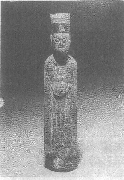 释义 | 木雕文侍俑 木雕文侍俑南宋。高36厘米。1953年于浙江省杭州市老和山宋墓出土,浙江省博物馆藏。俑由一段木料圆雕而成,作端立状,首戴幞头,身着圆领宽袖垂足长袍,双手叠交于胸前,低眉顺目,一副听天由命的样子。其造型简洁,用刀洗炼,生动传神,颇具特色。 ☚ 木雕天王立像 金娃娃 ☛ |