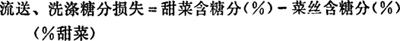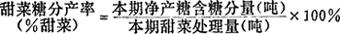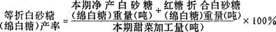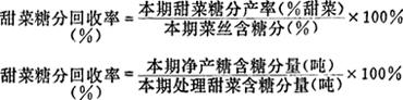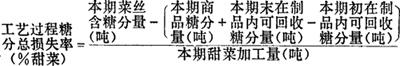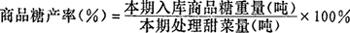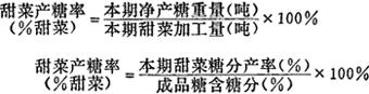 释义 | 主要技术经济指标统一计算方法 (一)关于时间的计算 1.生产经过日数 从甜菜流送开始日起,至在制品处理结束日止,所经过的日历日数。 2.渗出经过日数 从渗出器提汁开始时分起,至停机时停止提汁时分止,所经过时间折成的日数。 3.渗出中断日数 渗出中断时间以提汁中断时间计算,提汁虽未断,但进菜中断十分钟(单台切丝机15分钟)作为停机计算。 4.有效渗出日数 有效渗出日数(日)=渗出经过日数-渗出中断日数 5.日平均有效作业时间 是指一定时期内,每日平均有效渗出时间。 6.生产安全率 (二)关于甜菜加工量计算 1.甜菜加工量(压粕水不回收时) 2.甜菜加工量(有压粕水回收时) 3.日平均甜菜加工量 〔说明〕详见第三章工艺计算部分。 (三)关于糖分和糖分损失的计算 1.菜丝平均含糖分 2.工艺过程糖分总损失 〔说明〕(1)在制品内可回收糖分量(吨)=在制品糖分量(吨)-在制品非糖分量(吨)×非糖分成蜜系数 (3)废蜜纯度取盘点前十天实际加权平均数。 3.渗出已知糖分损失,即废粕糖分损失,详见第三章工艺计算部分 4.滤泥糖分损失 详见第四章。 5.废蜜糖分损失 6.流送、洗涤糖分损失 由于甜菜含糖难得可靠数据,可根据各厂具体情况,自流送、洗涤水中测得,但也不甚可靠。 7.甜菜糖分回收率 (四)关于产糖率、产蜜率及成品合格率的计算 1.甜菜糖分产率 甜菜糖分产率(%甜菜)=本期菜丝含糖分(%)-本期工艺糖分总损失(%甜菜) 2.甜菜产糖率 〔说明〕:本期净产糖重量(吨)=本期商品糖产量(吨)+本期末在制品可回收商品糖重量(吨)-本期初在制品可回收商品糖重量(吨) 3.等折白砂糖(绵白糖)产率 〔说明〕:红糖折算白砂糖(或绵白糖)方法。 (2)红糖糖分量(吨)=红糖重量(吨)×含糖分(%) (3)红糖非糖分量(吨)=红糖锤度量(吨)-红糖糖分量(吨) (4)红糖含蜜糖分量(吨)=红糖非糖分量(吨)×非糖分成蜜系数 (5)折合白砂糖(绵白糖)的糖分量(吨)=红糖糖分量(吨)-红糖含蜜糖分量(吨) 4.商品糖产率 5.产蜜率 6.成品糖合格率 〔说明〕:(1)成品糖合格率,大型糖厂规定生产优质白砂糖为合格品,中型糖厂规定生产一级砂糖为合格品。 (2)开机时,最初三罐糖如不合格可不计入不合格量。 (3)检验不合格量,从包装出口算起,包括回溶和不回溶的。 (五)主要燃、材料消耗的计算 1.加工百吨甜菜耗原煤 〔说明〕:(1)制糖生产用煤包括制糖本部生产,停机洗罐,处理在制品用煤。 (2)不包括:发电、副产品生产(如酒精等)、开机前串水串汽、石灰生产、仓库、和生活用煤,厂部办公室取暖用煤。 2.加工百吨甜菜耗标准煤 〔说明〕:(1)发热量可实测或自当地煤建商店查得。 (2)用外汽的糖厂,按供热单位提供的数值折算。 3.加工百吨甜菜耗电 〔说明〕:制糖生产耗电从流送沟算起,至包装室成品入库堆垛完了为止。包括:制糖生产,停机洗罐,处理在制品,石灰窑生产动力和照明用电,对制糖生产供水供汽用电。 不包括:开机前串水串汽,试车、甜菜保管场、干粕,酒精等其它产品生产和照明用电、机修车间、生活服务区、厂部办公室用电。 4.加工百吨甜菜耗辅助材料 加工百吨甜菜耗滤布、切丝刀片、硫磺、石灰石、无烟煤等,均以本期实耗量被本期处理百吨甜菜量除求得。 (六)甜菜收运贮损失率及加工耗用工日的计算 1.甜菜收运贮损失率 2.加工百吨甜菜耗工日 〔说明〕:制糖生产人员,从流送沟算起到成品糖入库堆垛完了,其中包括石灰生产、清扫人员,还包括供汽、供水、供电、水泵、维修、化验人员、成品库堆垛工,除此之外的管理人员、服务人员、辅助人员均不包括在内。 另外厂内搬运甜菜人员也计算在内,其中包括搬运管理人员、卸车人员、保管人员、铲车和汽车司机、随车人员;但各甜菜收购站的搬运管理人员不包括在内。 (七)提汁率、清净效率、结晶率等的计算(分别见有关各章节) |