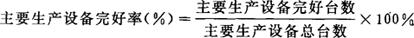 | 释义 | 主要生产设备完好率 指反映主要生产设备完好情况的指标,它直接反映了机械制造企业主要生产设备技术状态和维护修理工作的好坏。其计算公式为:
