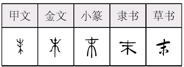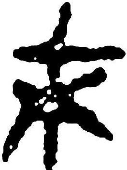 mò表意,甲骨文、金文从木,上加指示符号,小篆上加一横画,表示树梢所在的位置,隶定为“末”。本义为树梢,引申为物体的尖端、事物的尽头、次要的事物、位置或时间在后的、微小的、细碎的、不重要的等。 【辨析】 ❶以“末”作音符构成的形声字读音不同。mò:沫、茉、秣∣mǒ:抹∣mā:抹∣wà:袜。 ❷末/蔑/靡/无 这四个字意义相近,读音也相近,是同源字。 ❸末/本 见16页“本”。末 金 篆 隶mò【析形】指事字。金文、小篆字形从木,“木”上加一横指明树木末梢所在。隶书字形将笔画拉直,写作“末”。 【释义】《说文》:“木上曰末。”本义为树梢。树梢在顶端,故又泛指物的末端。引申指时间上在后的,末尾,如[始末]。树梢细微,引申为微小的,不重要的。[舍本逐末]比喻做事不注意根本,而只抓细枝末节。[强弩之末]谓强弩发出的箭,到了末程,连很薄的鲁绢也穿不过。比喻衰微之势。 【shape analysis】It is the indicative character.The meaningful part is 木(mù,the wood)in Bronze Inscriptions and Small Seal script.A cross is added on木,which means the twig of the tree. 【original meaning】The treetop. 末 *末mwat[甲骨] [金文] [小篆]《說文》: ,木上曰末。从木、从丄。(六篇上) 以短畫指出樹梢的部位。 ☚ 瞂 旦 ☛ 00000939 |