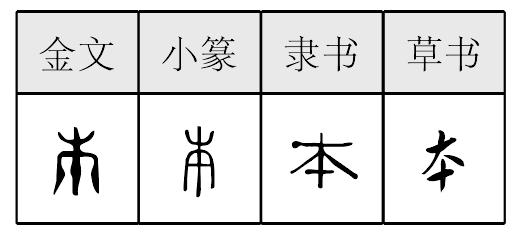 běn表意,金文、小篆从木,下加一短横表示根部的位置,隶定为“本”。本义为树木或草的根部,引申为事物的根源、中心的、主要的、本来、原来、自己方面的、版本、底本、册子等。 【辨析】 ❶以“本”作音符构成的形声字一般声母为b,但韵母不同。běn:苯∣bèn:笨∣bō:钵。 ❷本/末 这两个字是反义词,“本”指下边的树根,“末”指上边的树梢;“本末倒置”指把主要的和次要的弄颠倒了,“舍本逐末”指放弃根本的,追求细枝末节或次要的。 ❸本/根 见125页“根”。 ❹本/该 见116页“该”。本 金 篆 隶běn【析形】指事字。古文字形从木,“木”下加一横指明树根之所在。 【释义】《说文》:“木之下曰本。”本义指草木的根。由草木的根引申为事物的根本、基础或主体部分。农业是国民经济的基础,又特指农业生产。由根本引申为本来、原来。自己和别人相比,自己方面为主,故可指自己方面的,如:本人、本处、本地。[本末倒置]“本”是根部,根本。“末”是树梢,末节。比喻颠倒了事物的主次轻重。 【shape analysis】It is the indicative character.In ancient character the meaningful part is木.Adding a cross below木 indicates where the root is. 【original meaning】The root of the grass and the tree. 本 ☚ 弗 圣 ☛ 00001180 |